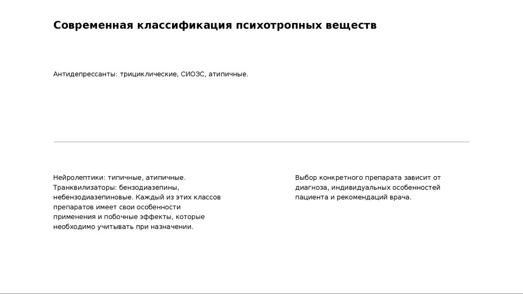 Современная классификация психотропных веществАнтидепрессанты: трициклические, СИОЗС, атипичные.
