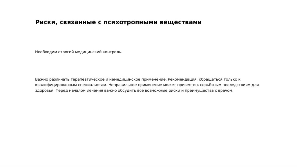 Риски, связанные с психотропными веществамиНеобходим строгий медицинский контроль.