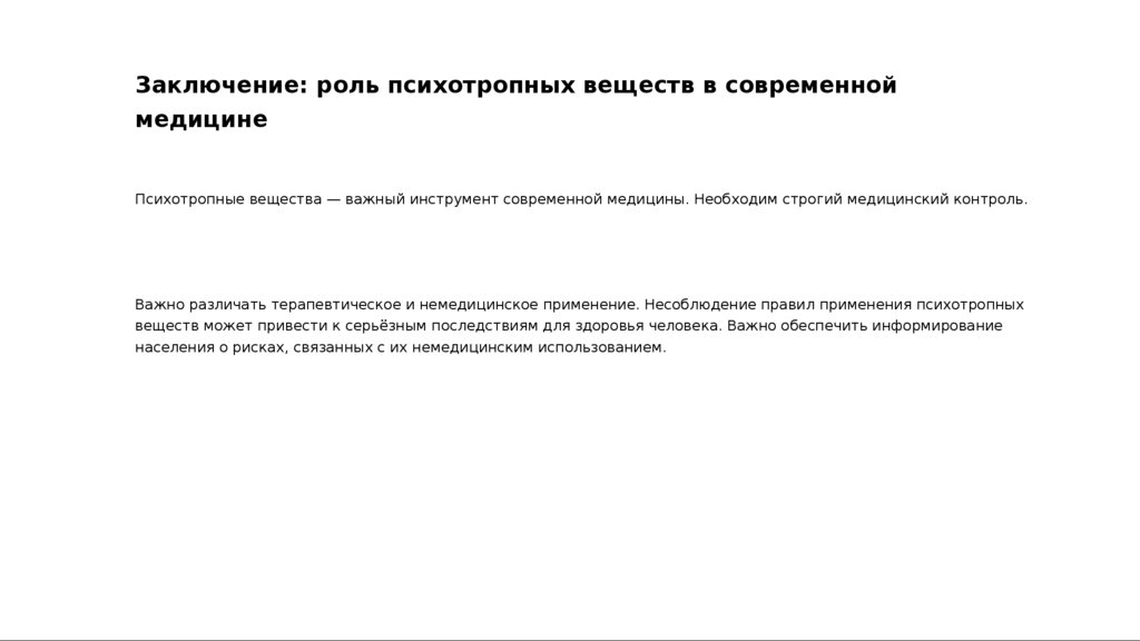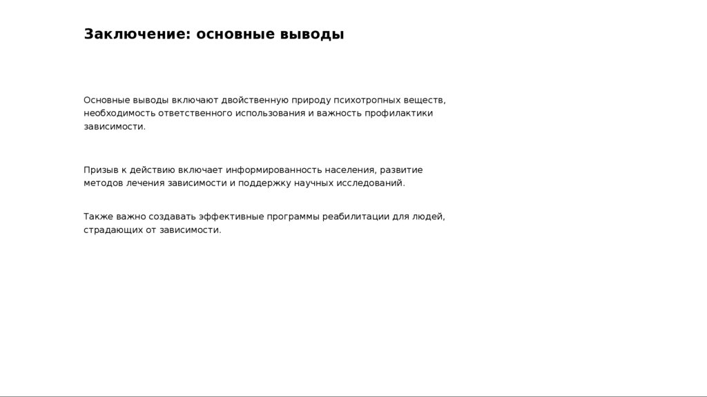 Заключение: основные выводыОсновные выводы включают двойственную природу психотропных веществ,
