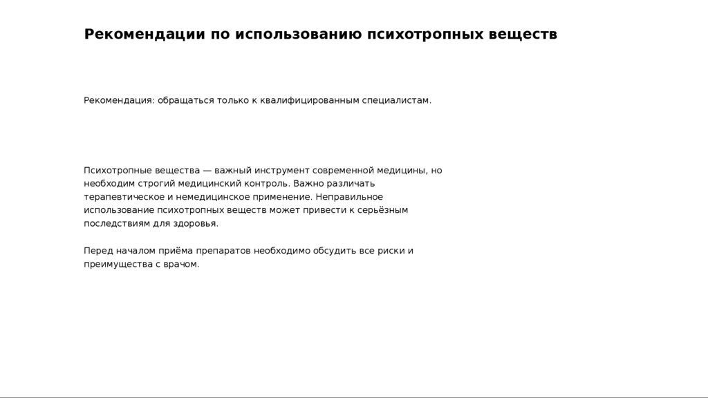 Рекомендации по использованию психотропных веществРекомендация: обращаться только к квалифицированным специалистам.
