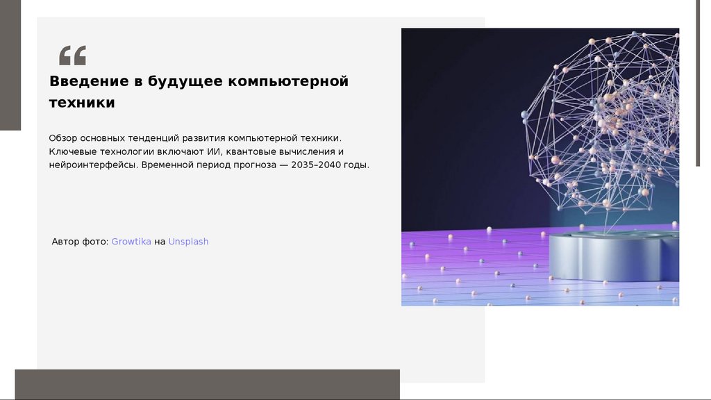 техники, включая квантовые ИИ-системы, нейрокомпьютерные интерфейсы и молекулярные компьютеры. Мы также