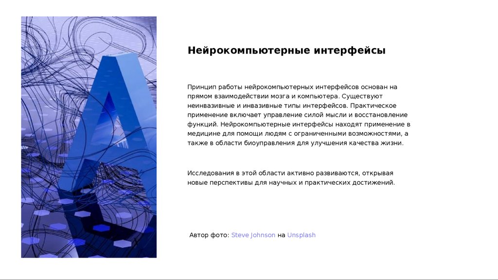 Нейрокомпьютерные интерфейсыПринцип работы нейрокомпьютерных интерфейсов основан на
