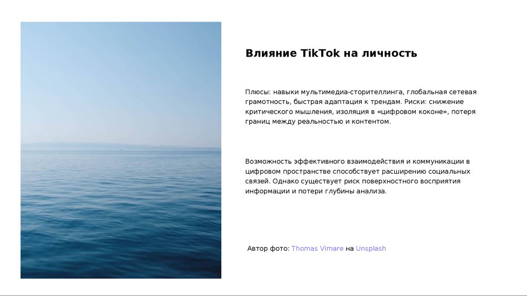 Влияние TikTok на личностьПлюсы: навыки мультимедиа-сторителлинга, глобальная сетевая