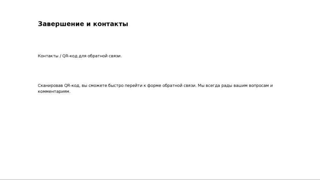 Завершение и контактыКонтакты / QR-код для обратной связи.