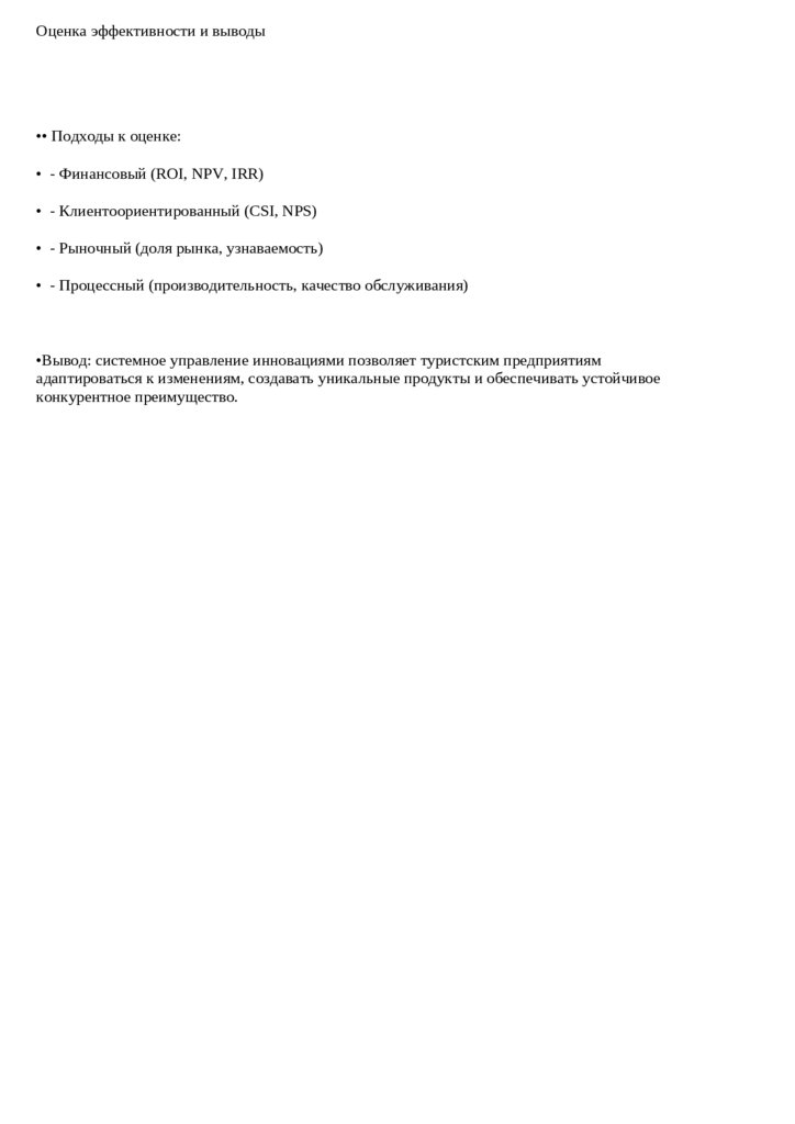 •Вывод: системное управление инновациями позволяет туристским предприятиям