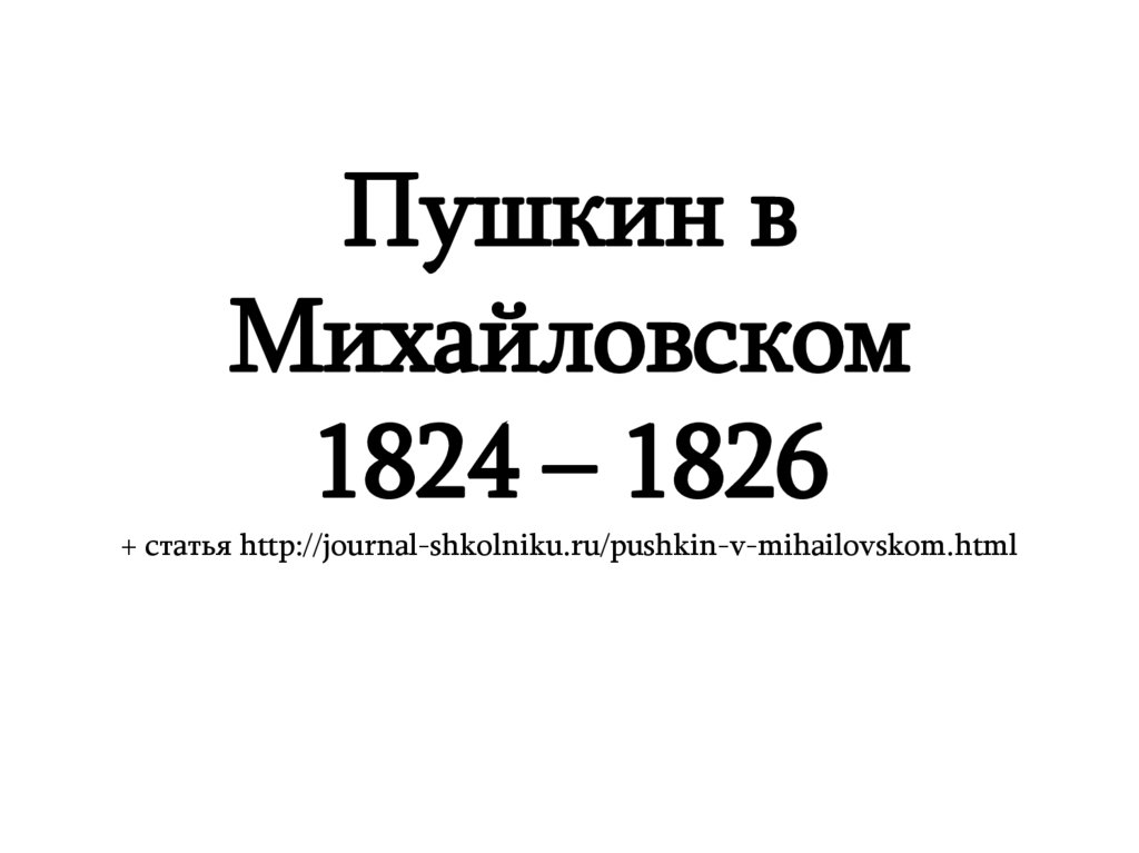 1. Пушкин в Михайловском 1824 – 1826 + статья http://journal-shkolniku.ru/pushkin-v-mihailovskom.html