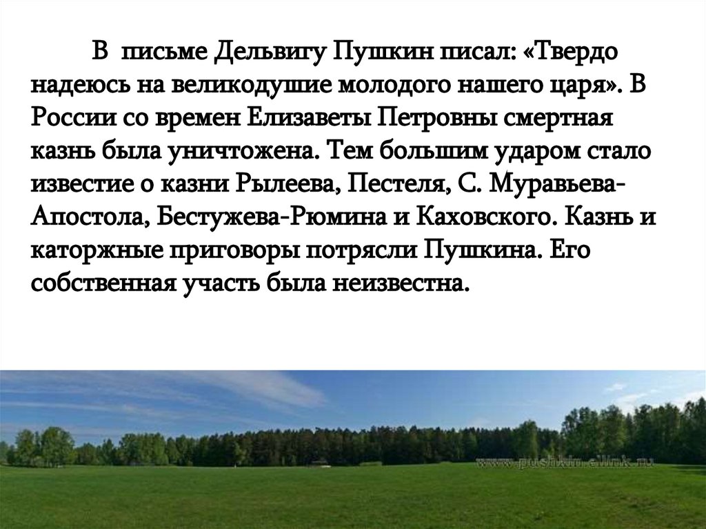 В письме Дельвигу Пушкин писал: «Твердонадеюсь на великодушие молодого нашего царя». В