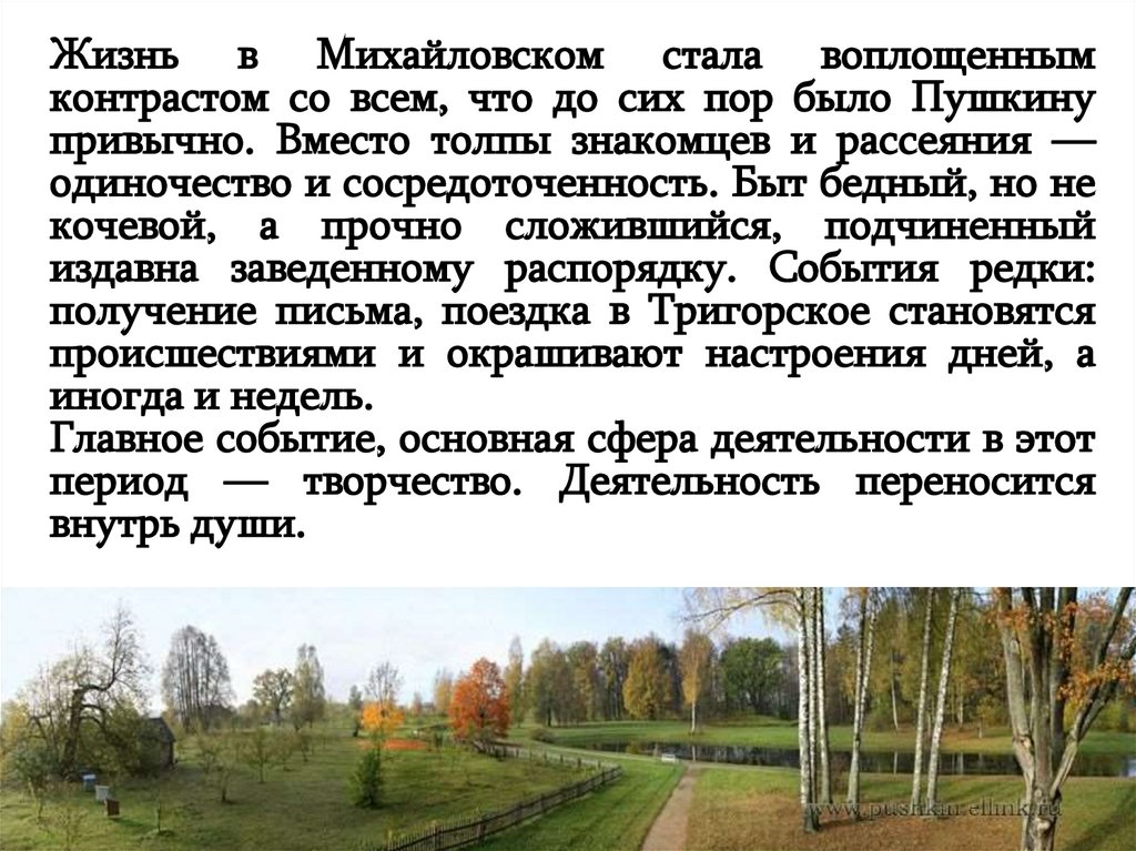 Жизнь в Михайловском стала воплощеннымконтрастом со всем, что до сих пор было Пушкину