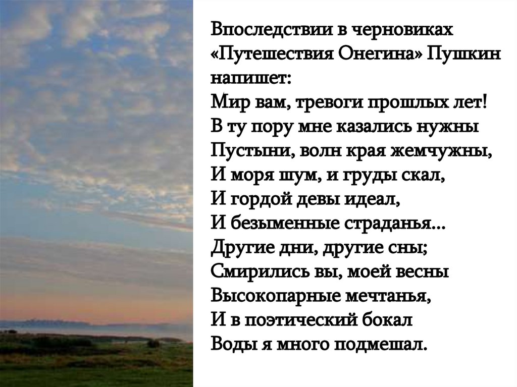 Впоследствии в черновиках«Путешествия Онегина» Пушкин