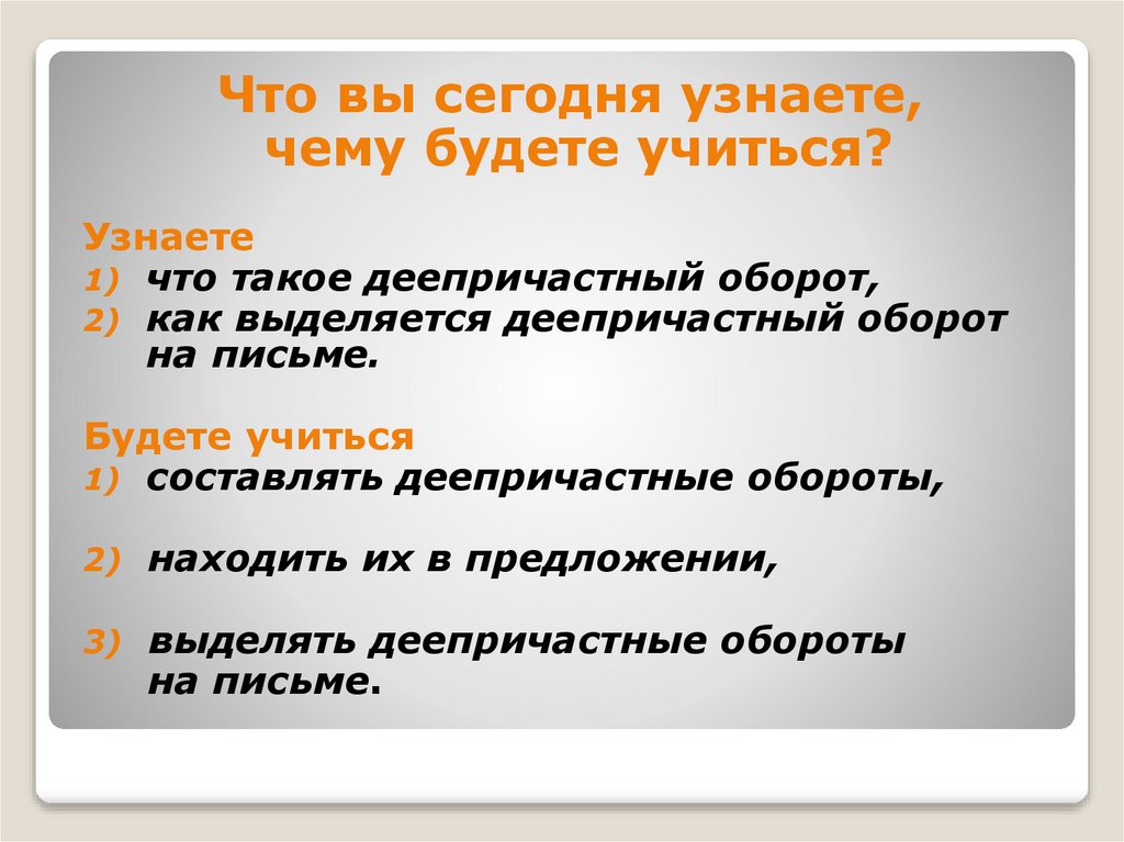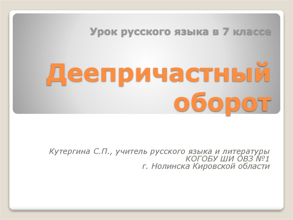 1. Урок русского языка в 7 классе Деепричастный оборот