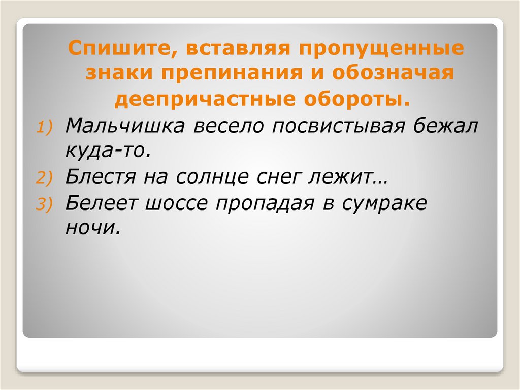3) выделять деепричастные обороты
