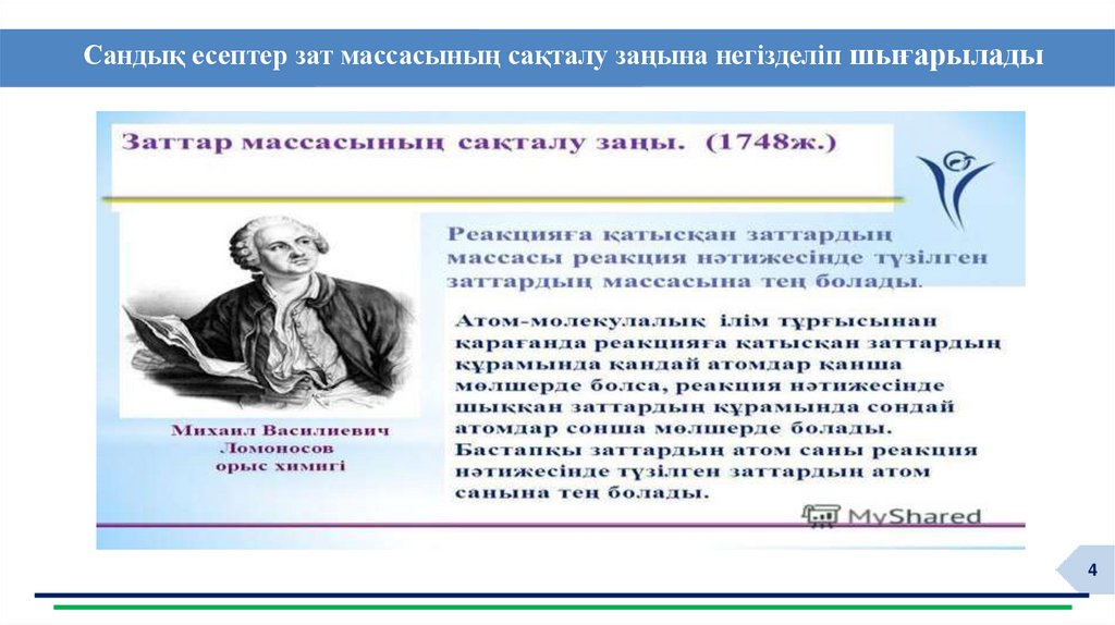 Сандық есептер зат массасының сақталу заңына негізделіп шығарыладыф