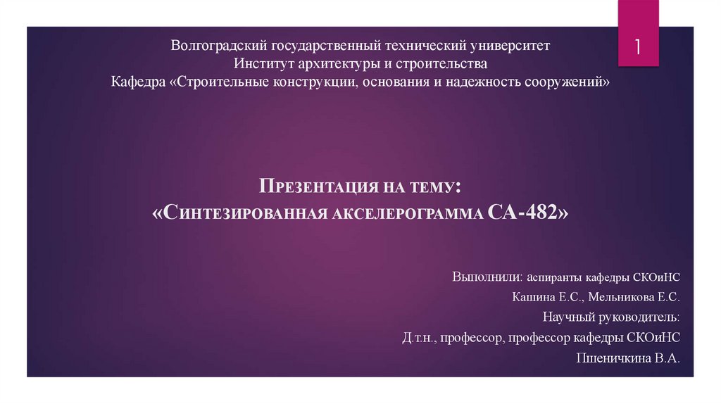 1. Презентация на тему: «Синтезированная акселерограмма СА-482»