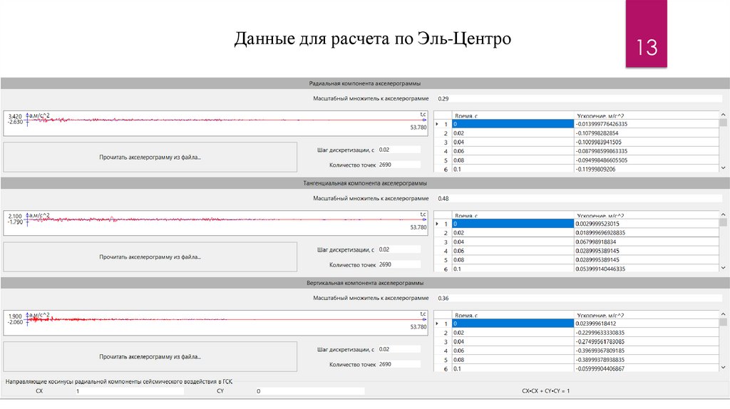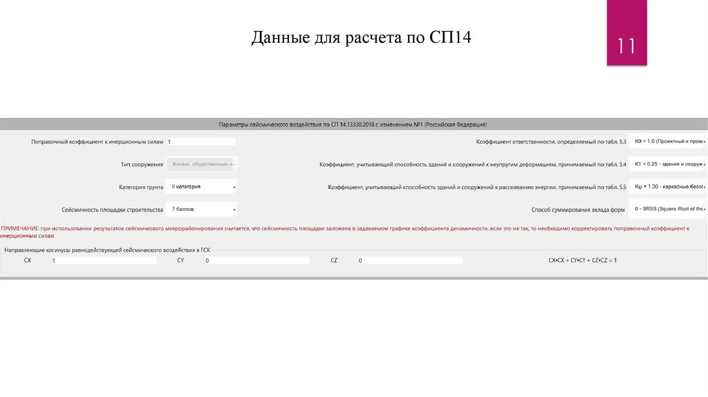 Расчет зданий и сооружений производится независимо на каждую изкомпонент сейсмического воздействия X, Y, Z. Расчетная горизонтальная
