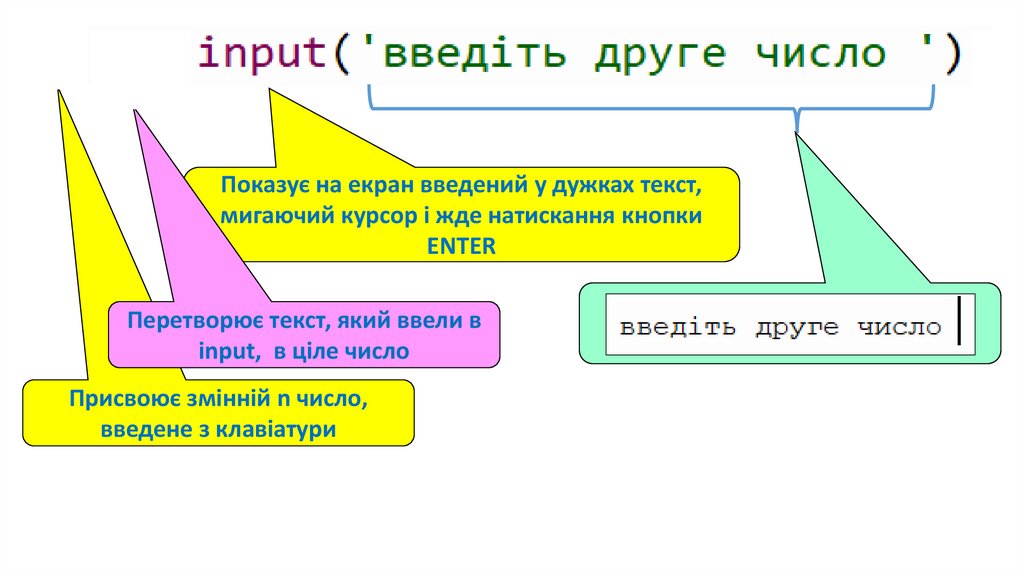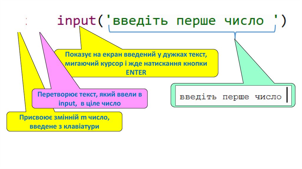 Показує на екран введений у дужках текст,мигаючий курсор і жде натискання кнопки