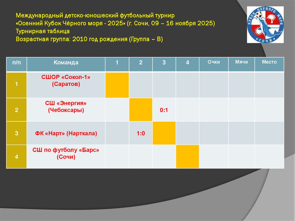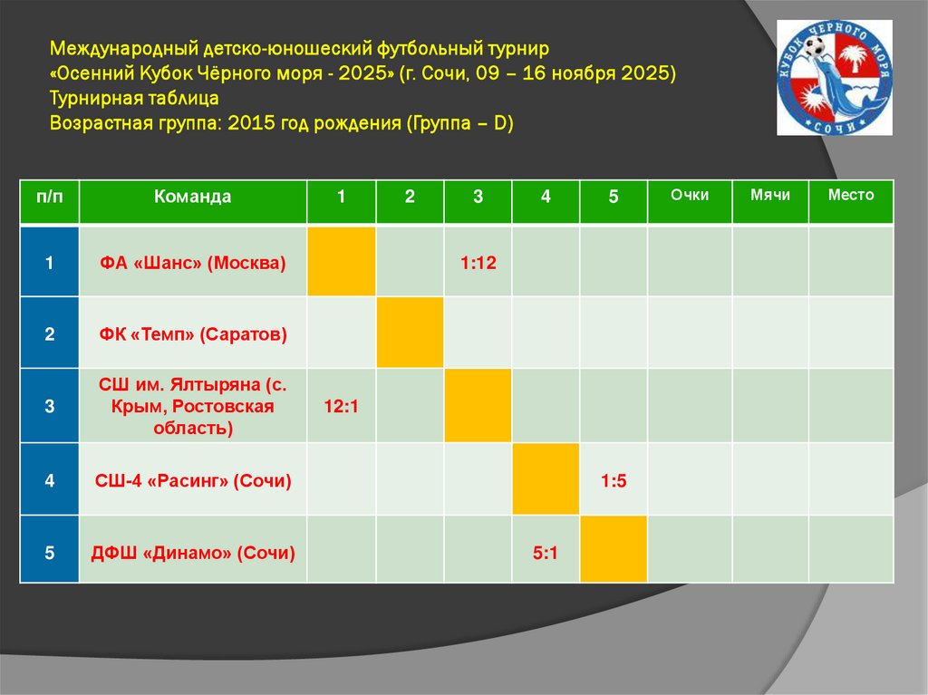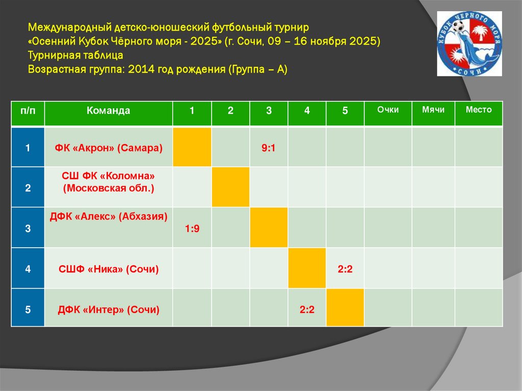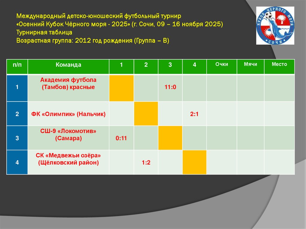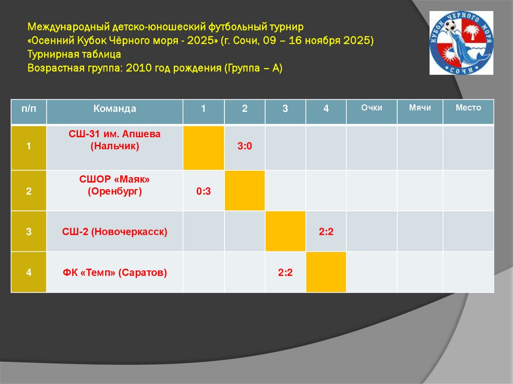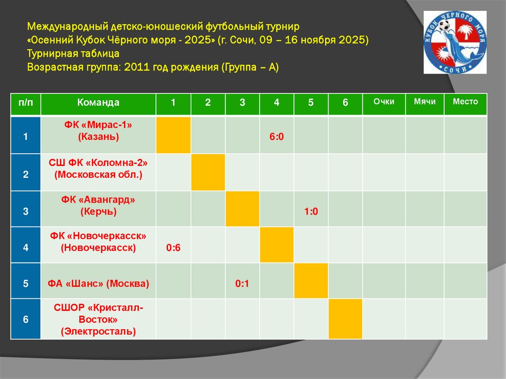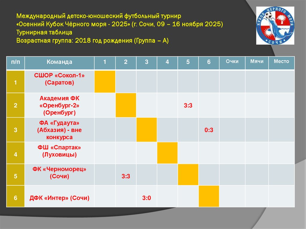 Международный детско-юношеский футбольный турнир«Осенний Кубок Чёрного моря - 2025» (г. Сочи, 09 – 16 ноября 2025)