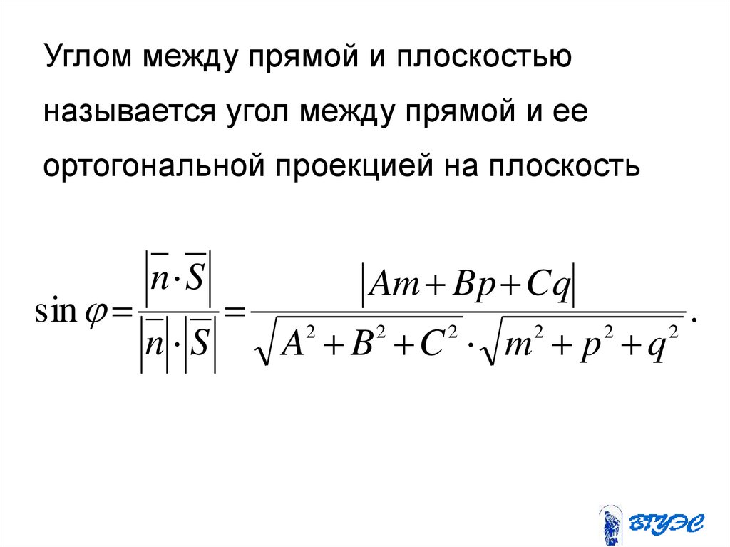 11. Угол между прямой и плоскостью
