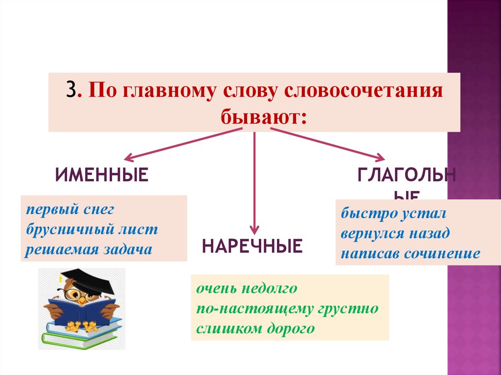 3. По главному слову словосочетаниябывают: