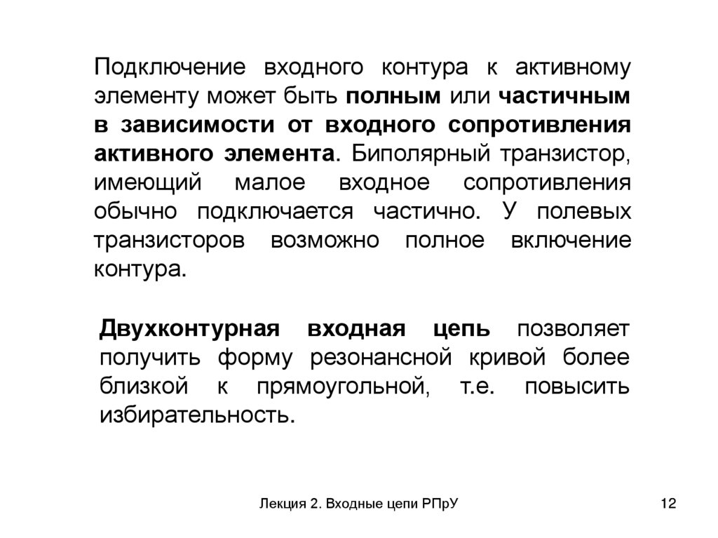 Подключение входного контура к активномуэлементу может быть полным или частичным