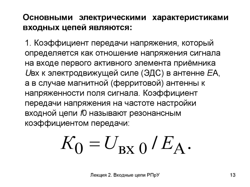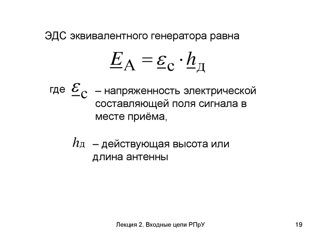 Uвх к электродвижущей силе (ЭДС) в антенне ЕА,