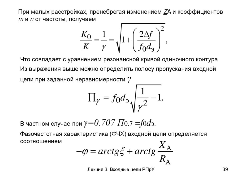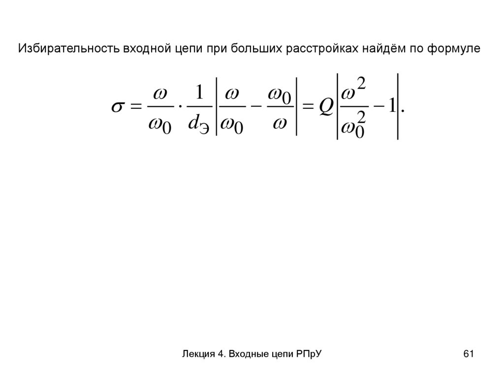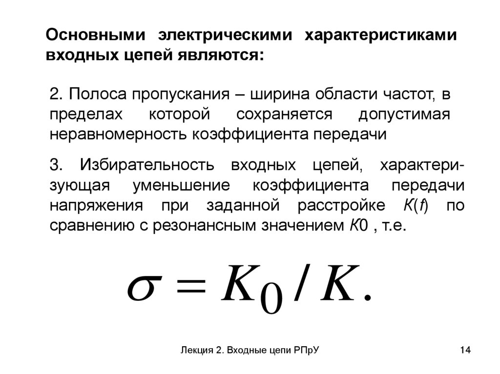 3. Избирательность входных цепей, характеризующая уменьшение коэффициента передачи