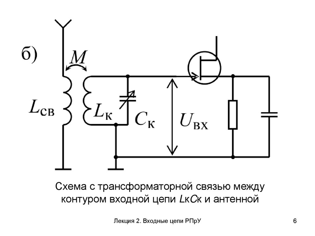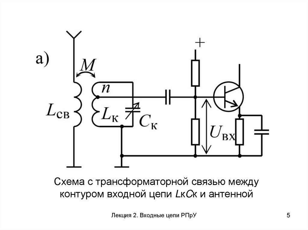 Схема с трансформаторной связью междуконтуром входной цепи LкCк и антенной