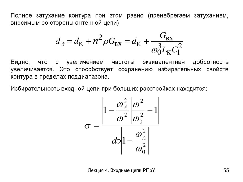 Лекции 2-4 ВХОДНЫЕ ЦЕПИ РАДИОПРИЁМНИКОВ (2)