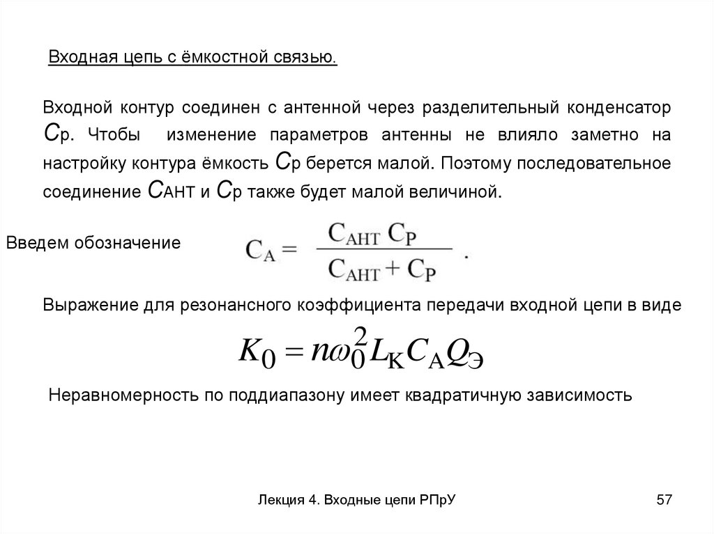 Входная цепь с ёмкостная связь входногоконтура с антенной