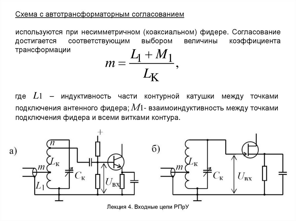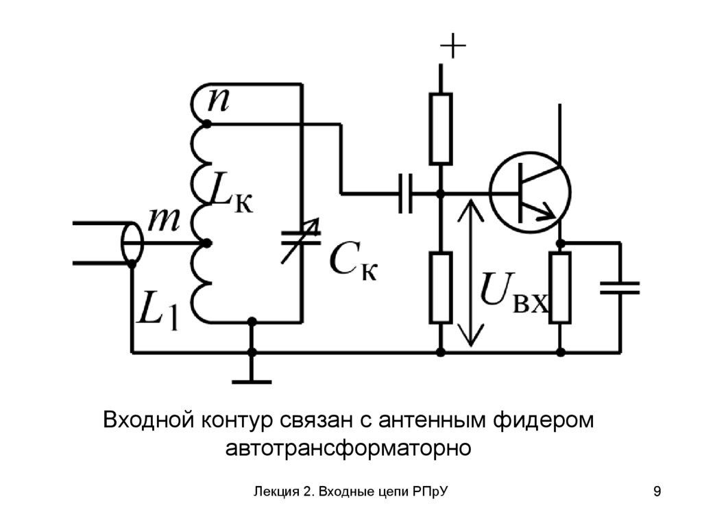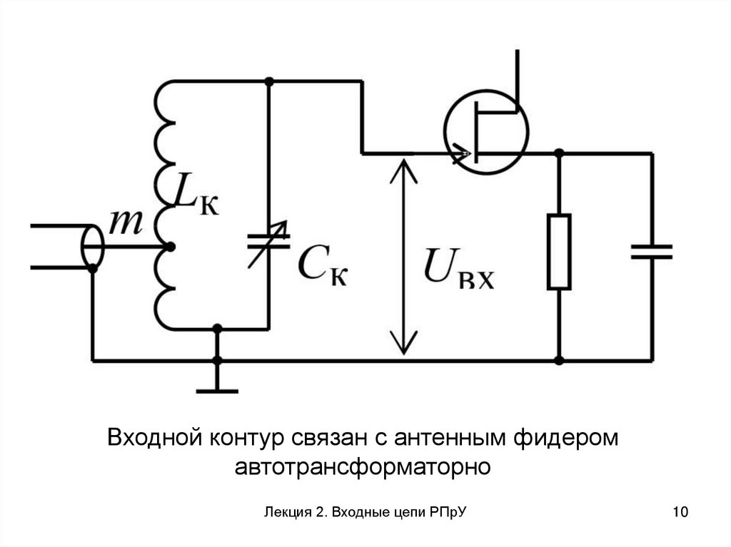 Входной контур связан с антенным фидеромавтотрансформаторно