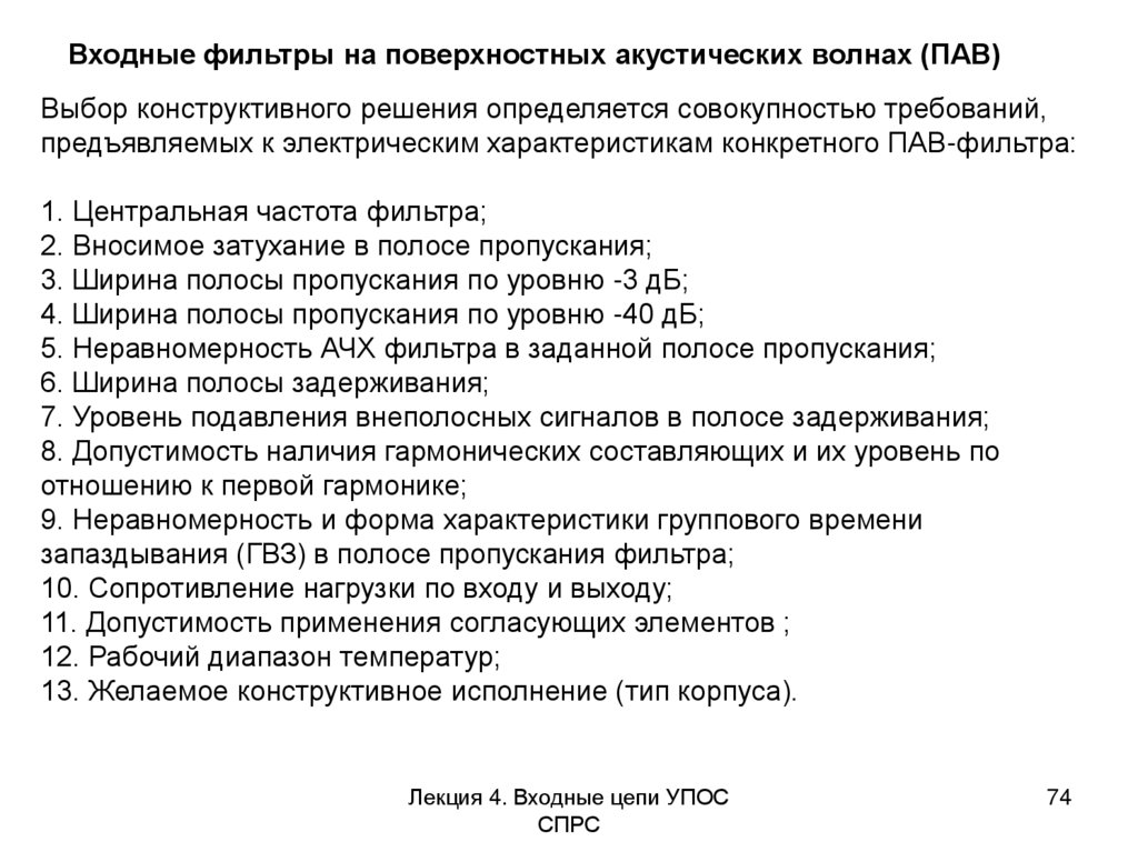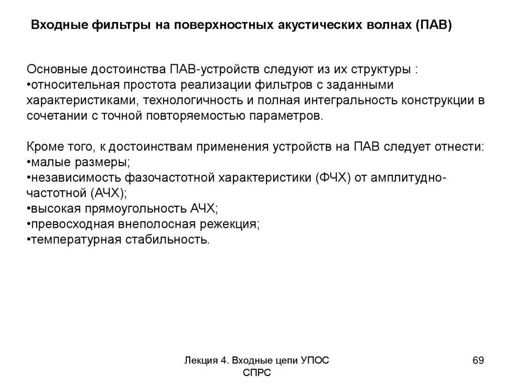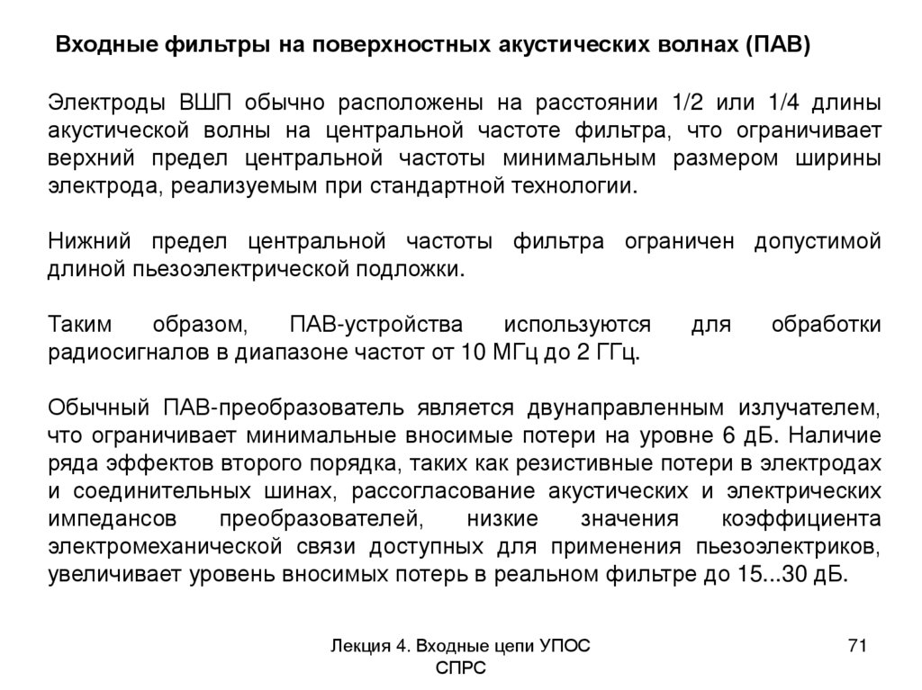 Входные фильтры на поверхностных акустических волнах (ПАВ)Лекция 4. Входные цепи УПОС