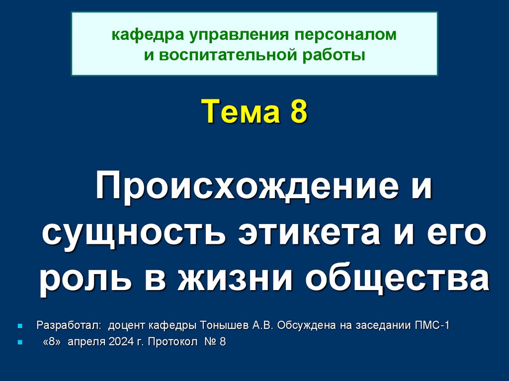 этикета: Курс лекций. – М.:ДГСК МВД России, 2012.90с.