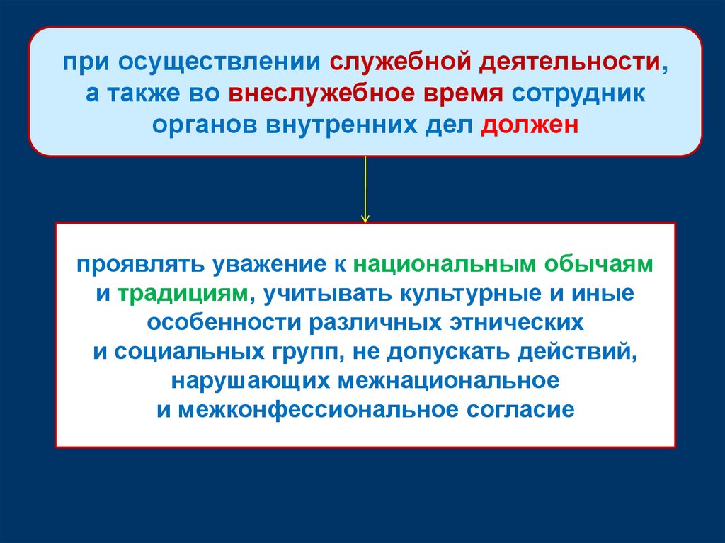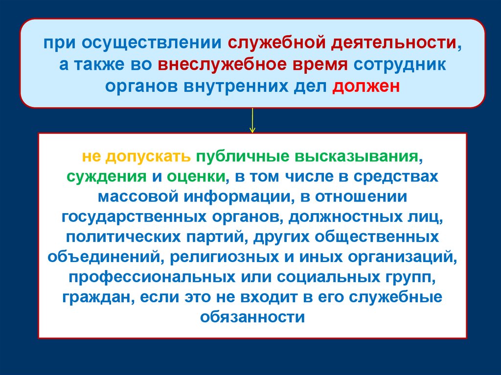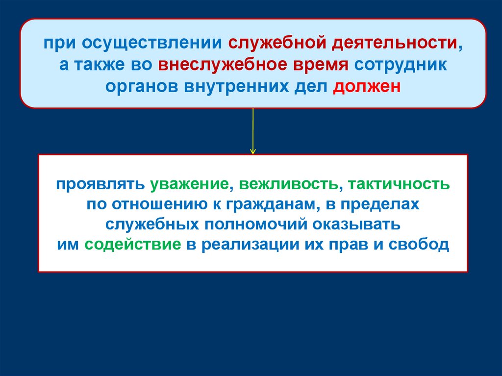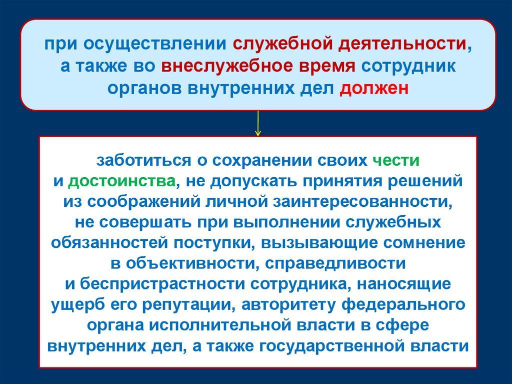 при осуществлении служебной деятельности,а также во внеслужебное время сотрудник