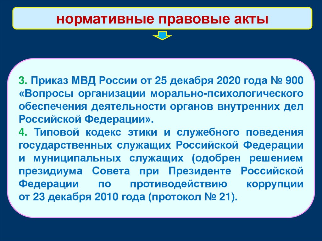 нормативные правовые акты3. Приказ МВД России от 25 декабря 2020 года № 900