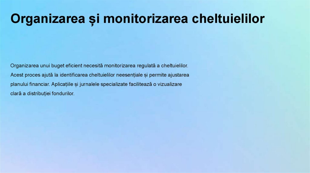Organizarea și monitorizarea cheltuielilorOrganizarea unui buget eficient necesită monitorizarea regulată a cheltuielilor.