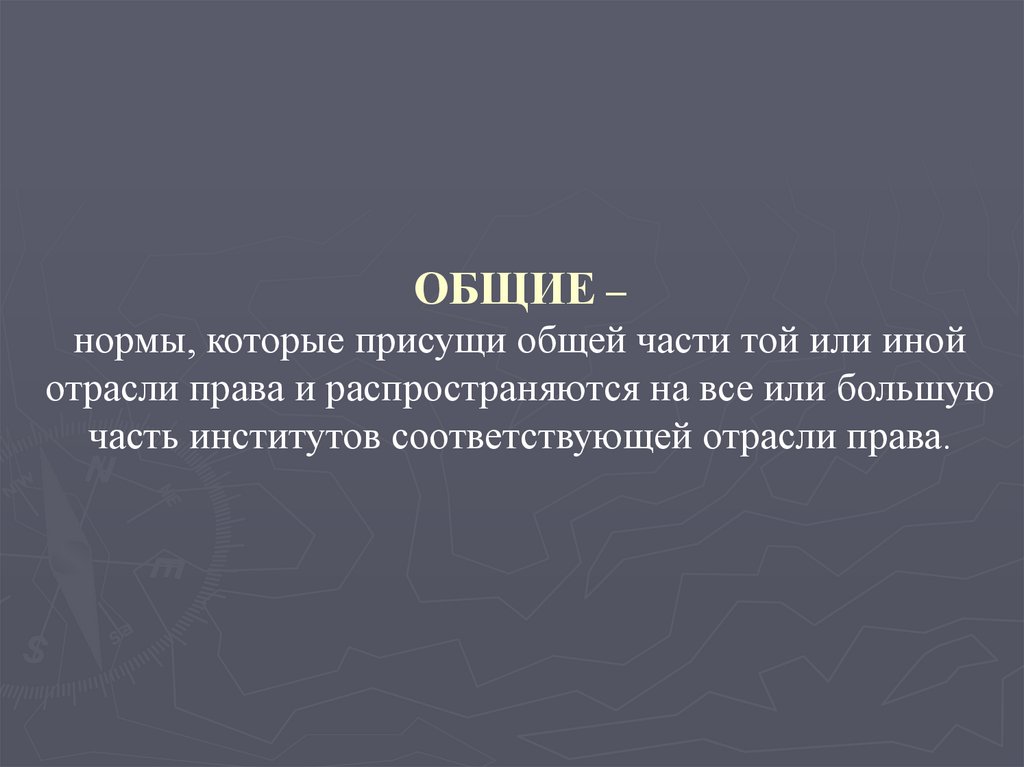 ОБЩИЕ –нормы, которые присущи общей части той или иной