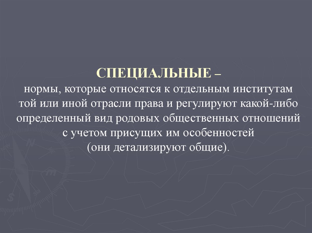 СПЕЦИАЛЬНЫЕ –нормы, которые относятся к отдельным институтам