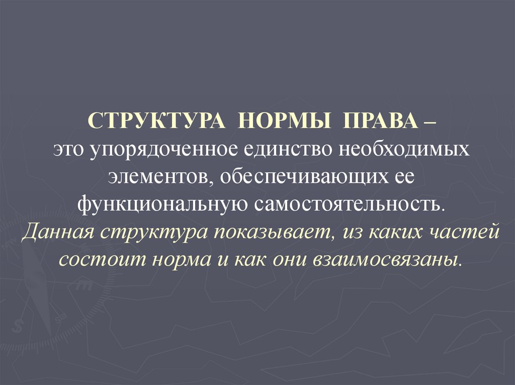 СТРУКТУРА НОРМЫ ПРАВА –это упорядоченное единство необходимых