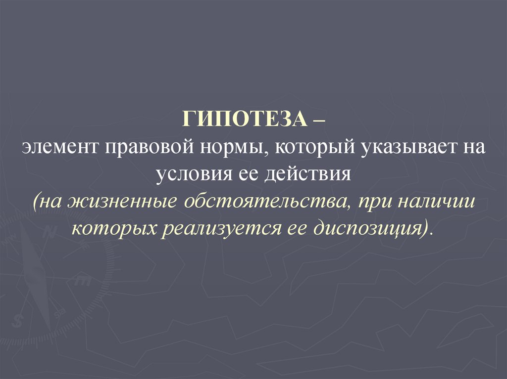 ГИПОТЕЗА –элемент правовой нормы, который указывает на