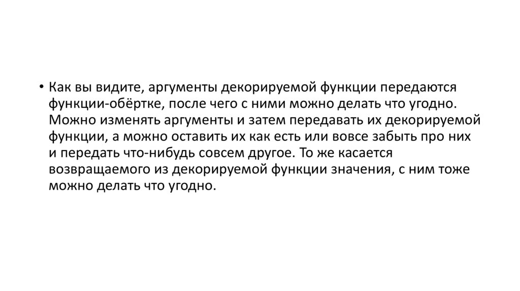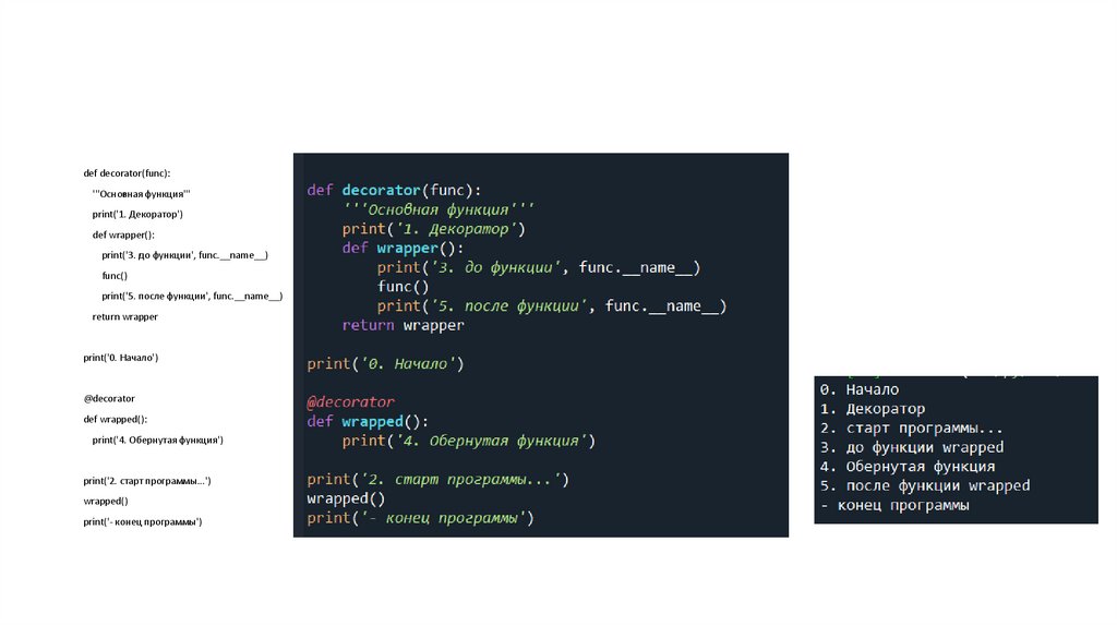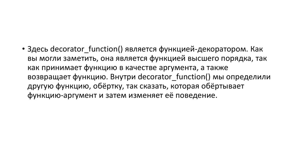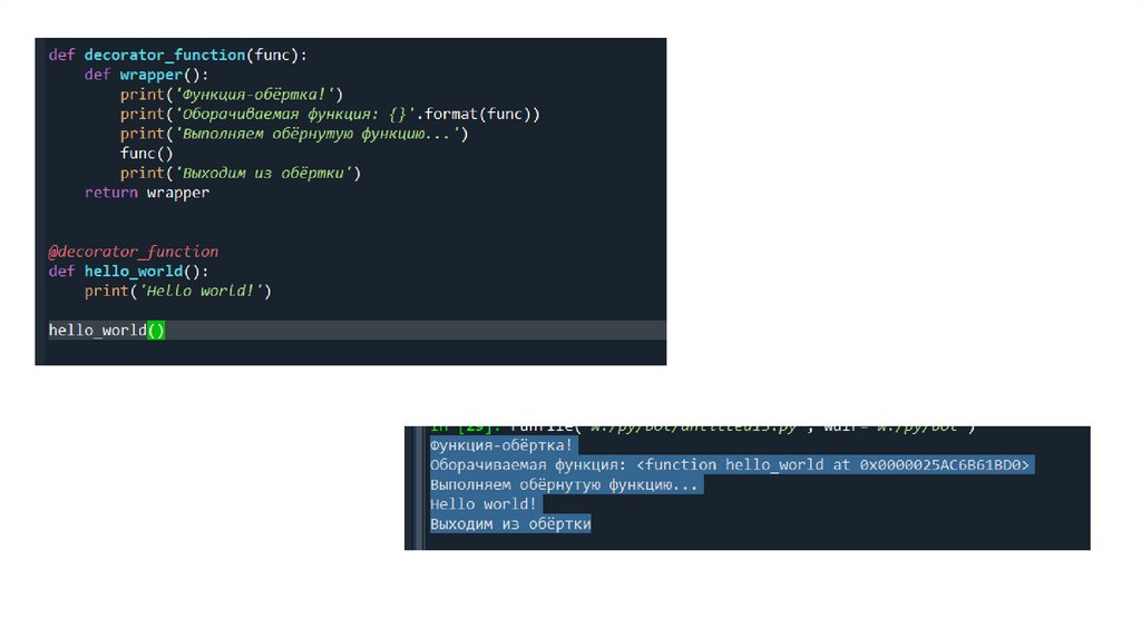 • Декораторы – это обертка вокруг функций (или классов) в Python,которая меняет способ работы этой функции.