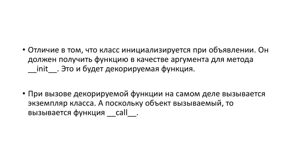 • Отличие в том, что класс инициализируется при объявлении. Ондолжен получить функцию в качестве аргумента для метода