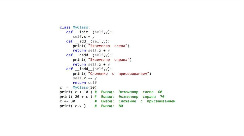 • Параметр self является ссылкой на сам класс и используется длядоступа к переменным, принадлежащим классу.