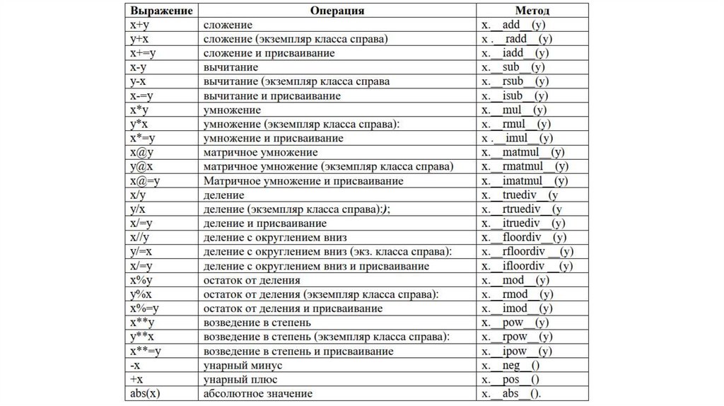 • Конструктор — уникальный метод класса,• Первый параметр конструктора во всех случаях self (ключевое слово,
