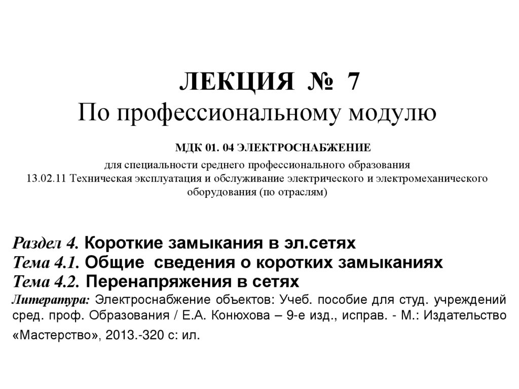 МДК 01. 04 ЭЛЕКТРОСНАБЖЕНИЕ