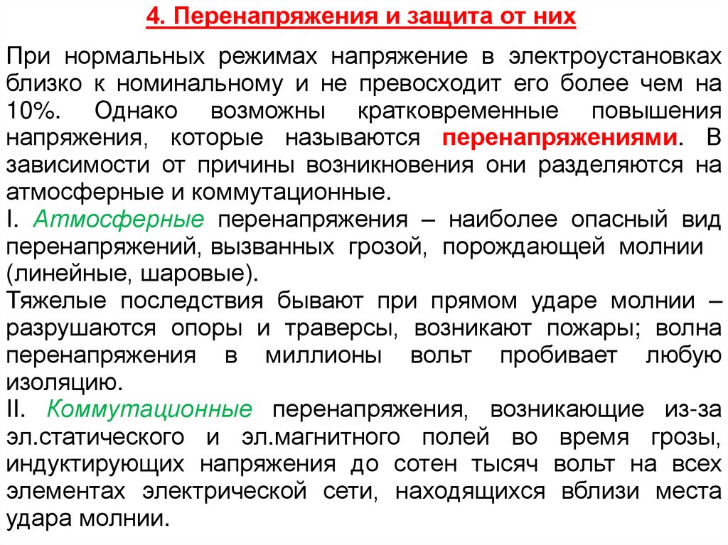 4. Перенапряжения и защита от нихПри нормальных режимах напряжение в электроустановках