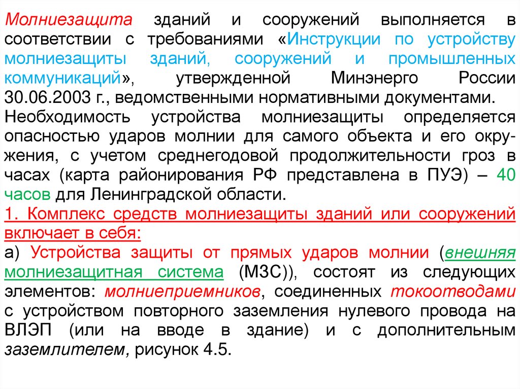 опасностью ударов молнии для самого объекта и его окружения, с учетом среднегодовой продолжительности гроз в