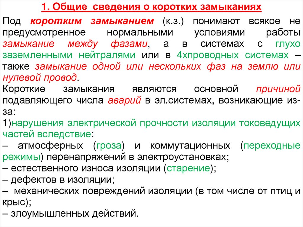 1.Общие сведения о коротких замыканиях.2.Расчет токов короткого замыкания.