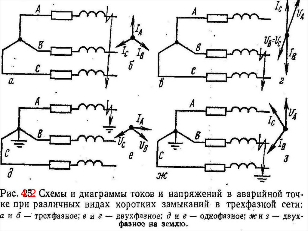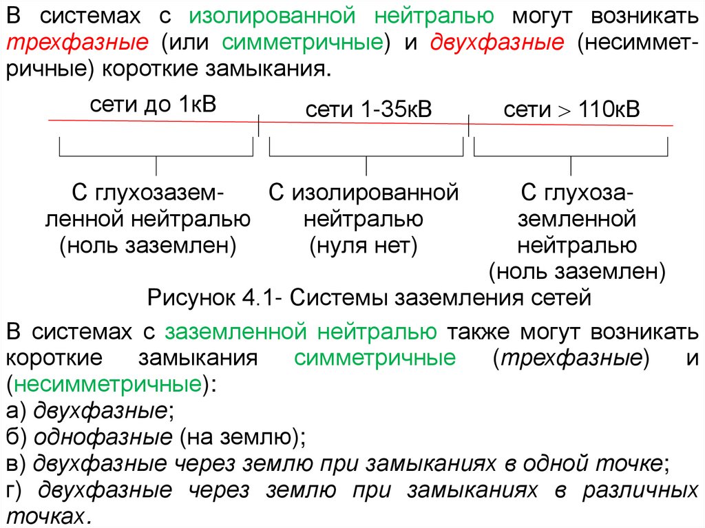 В системах с изолированной нейтралью могут возникатьтрехфазные (или симметричные) и двухфазные (несимметричные) короткие замыкания.