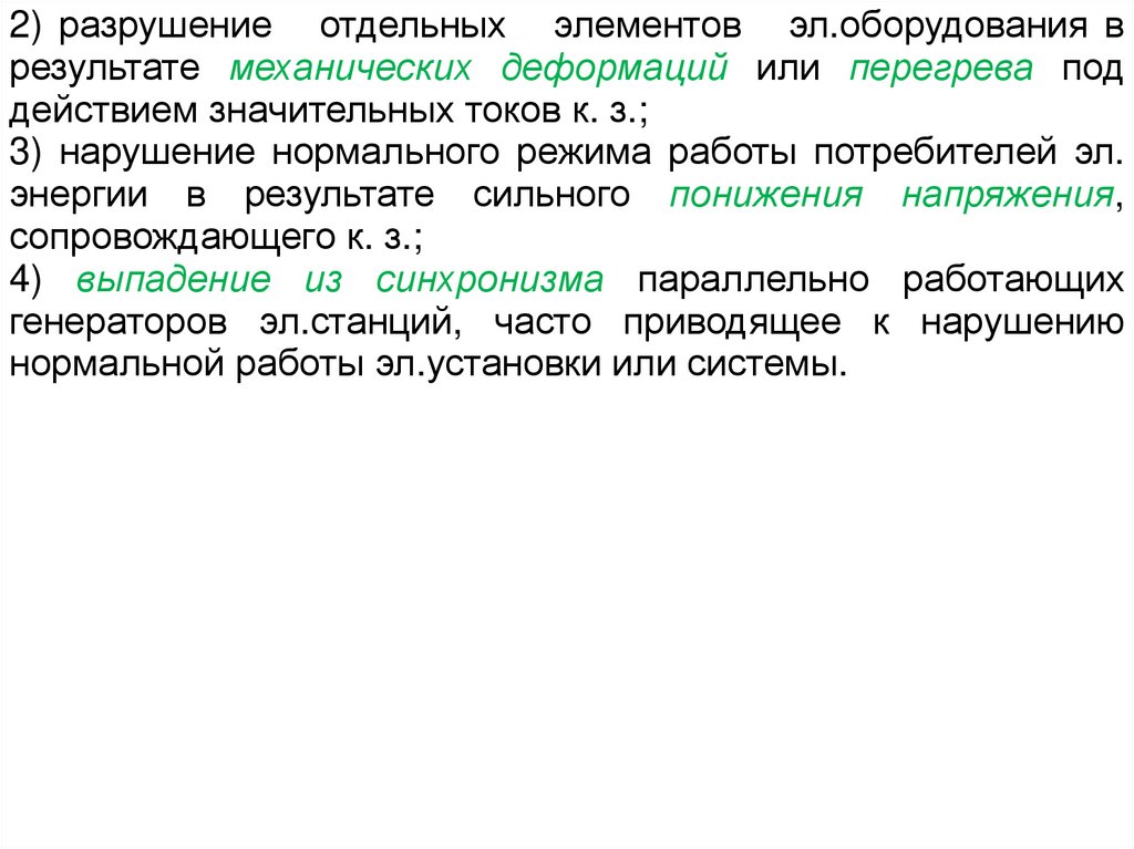 подавляющего числа аварий в эл.системах, возникающие изза: