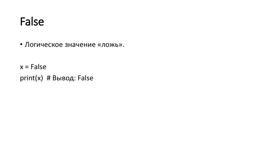 • Логическое ИЛИ. Возвращает первое истинное значение.print(False or True) # Вывод: True