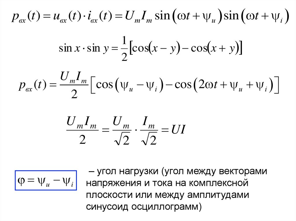 pвх (t ) uвх (t ) iвх (t ) U m I m sin t u sin t i1